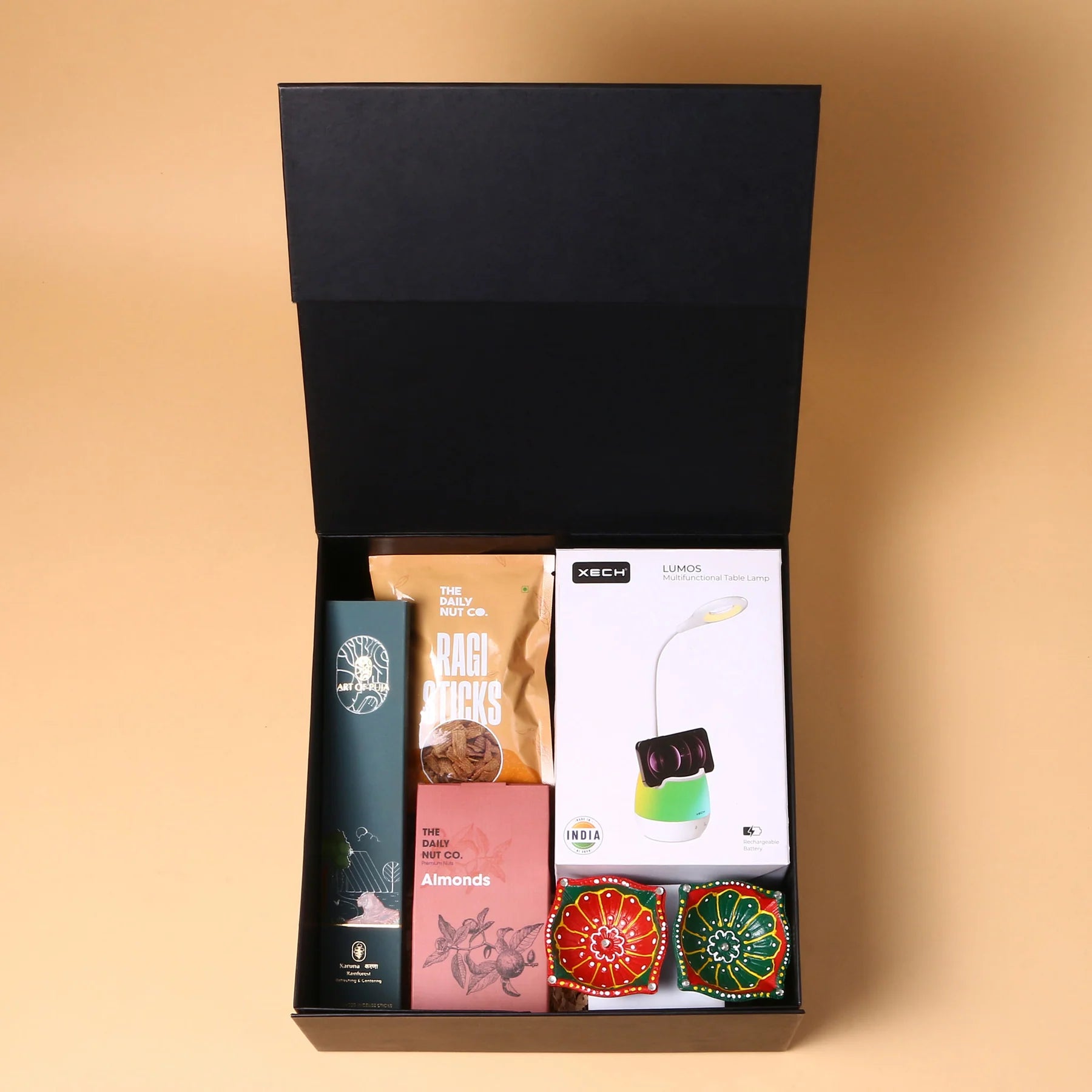 The Complete Glow and Nourish Gift Box with Multifunctional LED Therapy Device and Relaxation Gadgets is a thoughtfully curated set designed to pamper, rejuvenate, and bring holistic wellness to its receiver. This premium gift box combines the benefits of modern LED therapy technology with soothing relaxation tools, making it a perfect balance of beauty and wellness essentials. Whether you are gifting it to a loved one or treating yourself, this box offers an indulgent experience that promotes both outer radiance and inner calm.